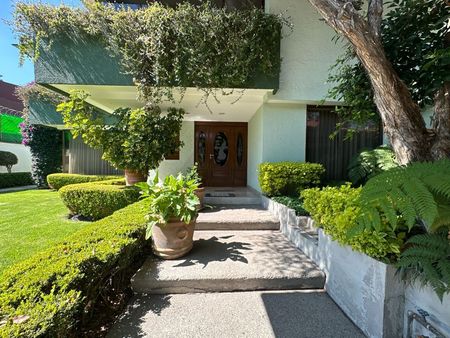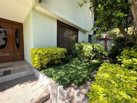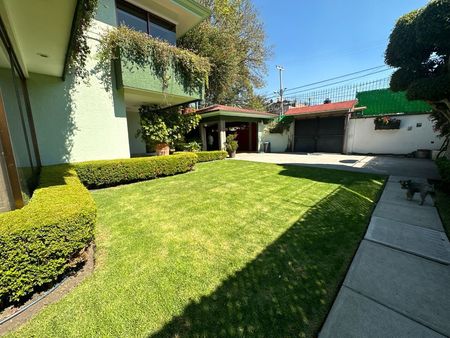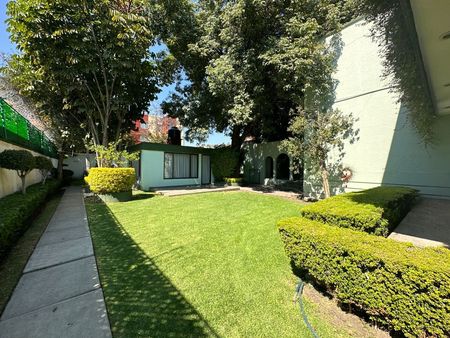 Casa sola con con jardines arbolados y terraza, amplios espacios, gran iluminación en su interior y ventilación natural, cuenta con un departamento/casa independiente en la parte trasera, excelente estado de conservación con acabados residenciales.