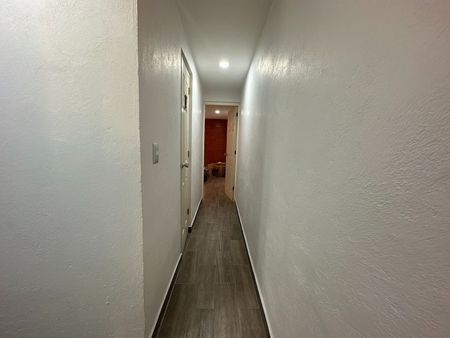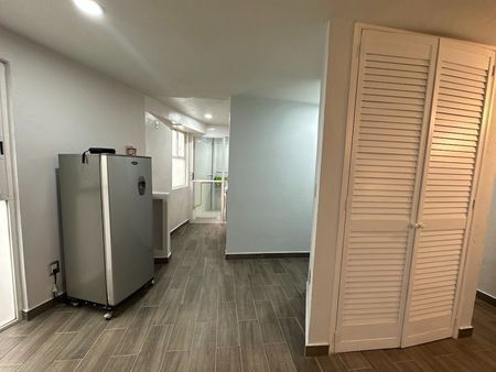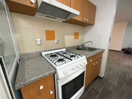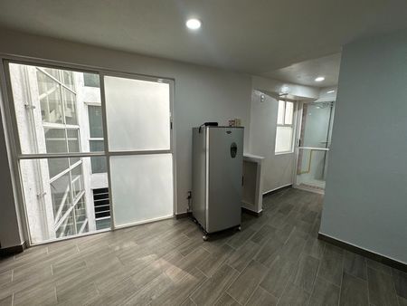 El departamento cuenta con estancia (sala-comedor), cocina integral, área de lavado, una recámara con clóset, con posibilidad de una segunda recámara y/o estudio, un baño completo con ventilación natural, un cajón de estacionamiento en línea. Acabados residenciales; cancelería de aluminio color blanco, piso de cerámica en todo el departamento.