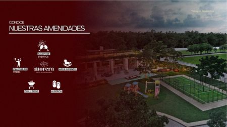 Amenidades: Pórtico de acceso controlado 24/7, barda perimetral, parque lineal y áreas verdes, parque con juegos infantiles, áreas de lectura, pet park amplio y cómodo, cancha de padel, casa club techada vialidades urbanizadas.